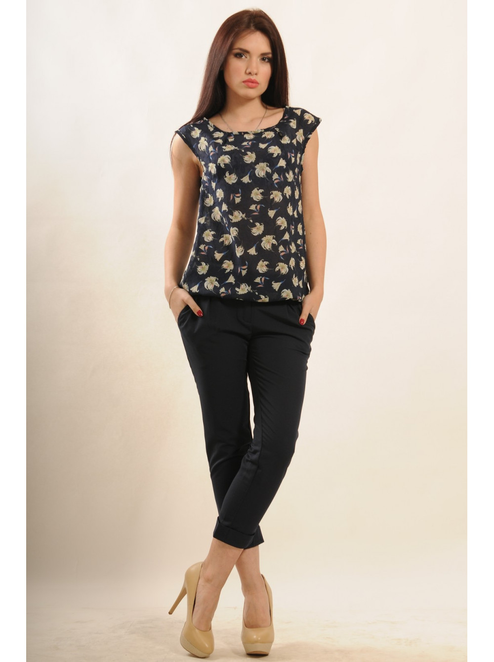 Блуза "Китти" БЛ 10.2-30/16синий цветы