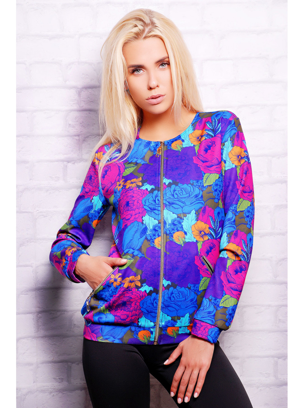 Фиолетовый букет кофта Бомбер2 (весна) д/р psФР-00001536_000010077