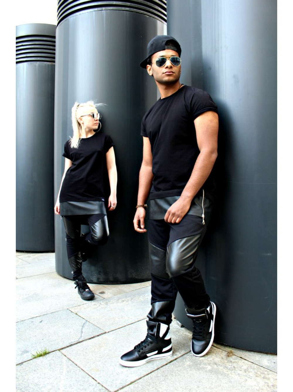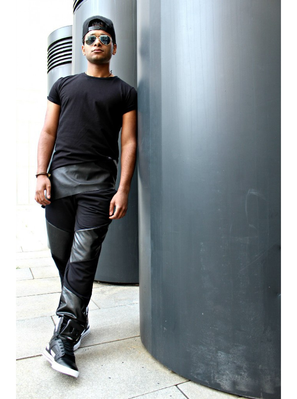 Футболка черначя с кожанным низом DC2336