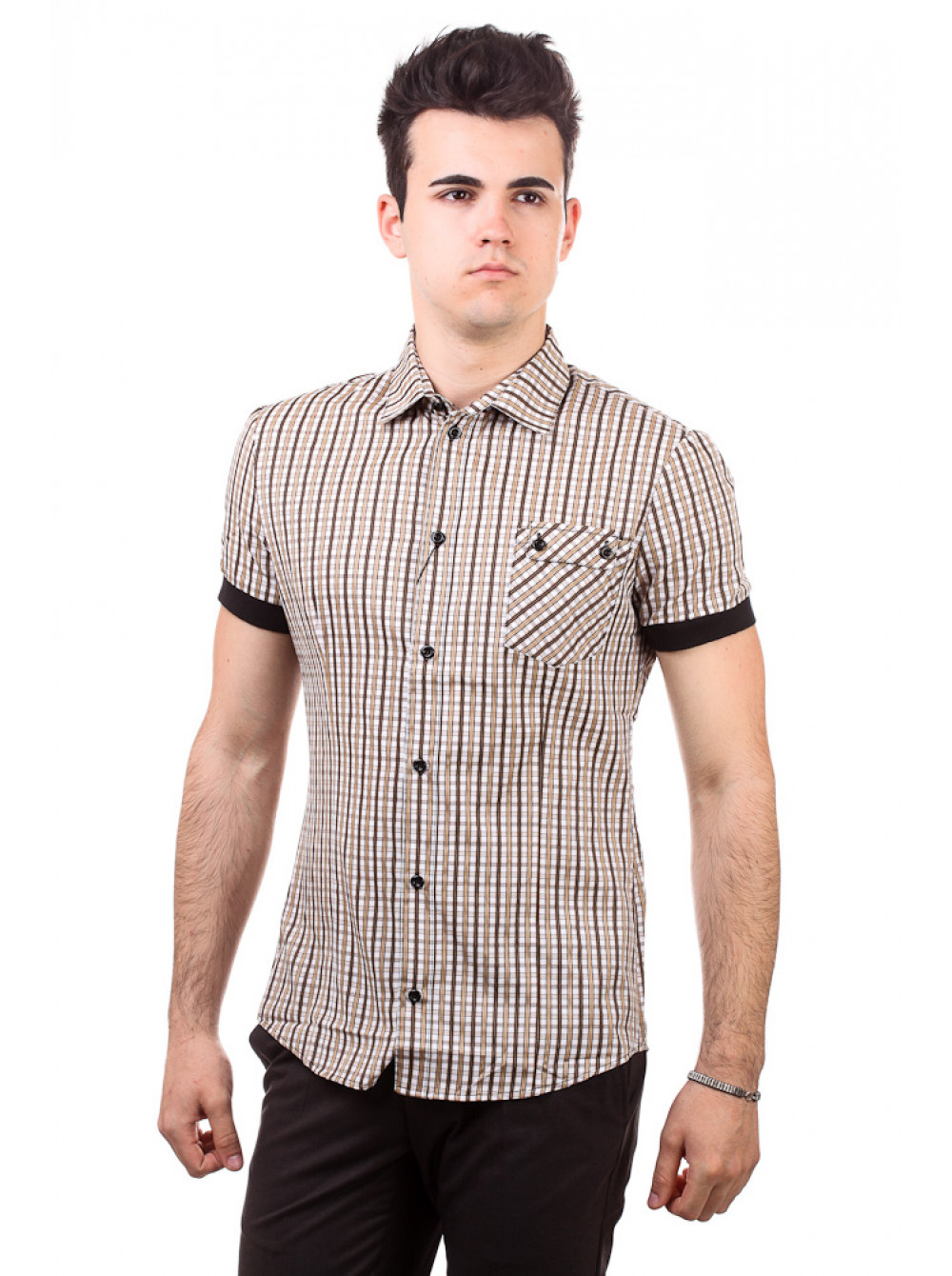 Рубашка Рубашка 3126_Клетка бежево-коричневая