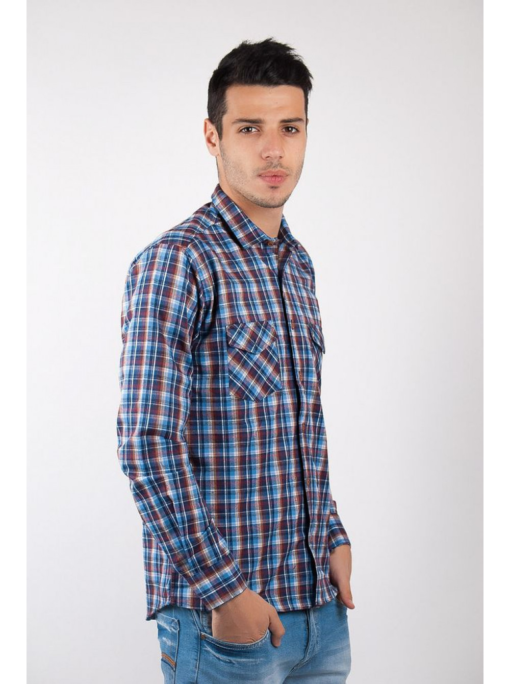 | Артикул | Рубашка №101F007_Сине-бежевый |