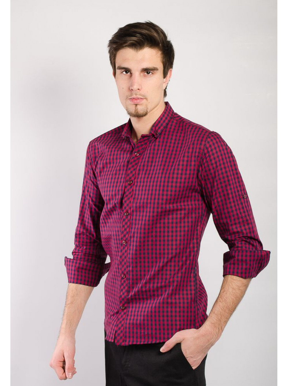 | Артикул | Рубашка №46G040_Клетка бордово-синяя |