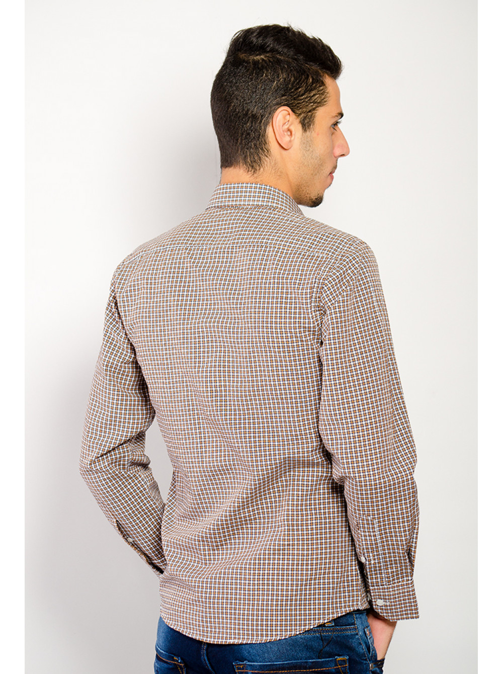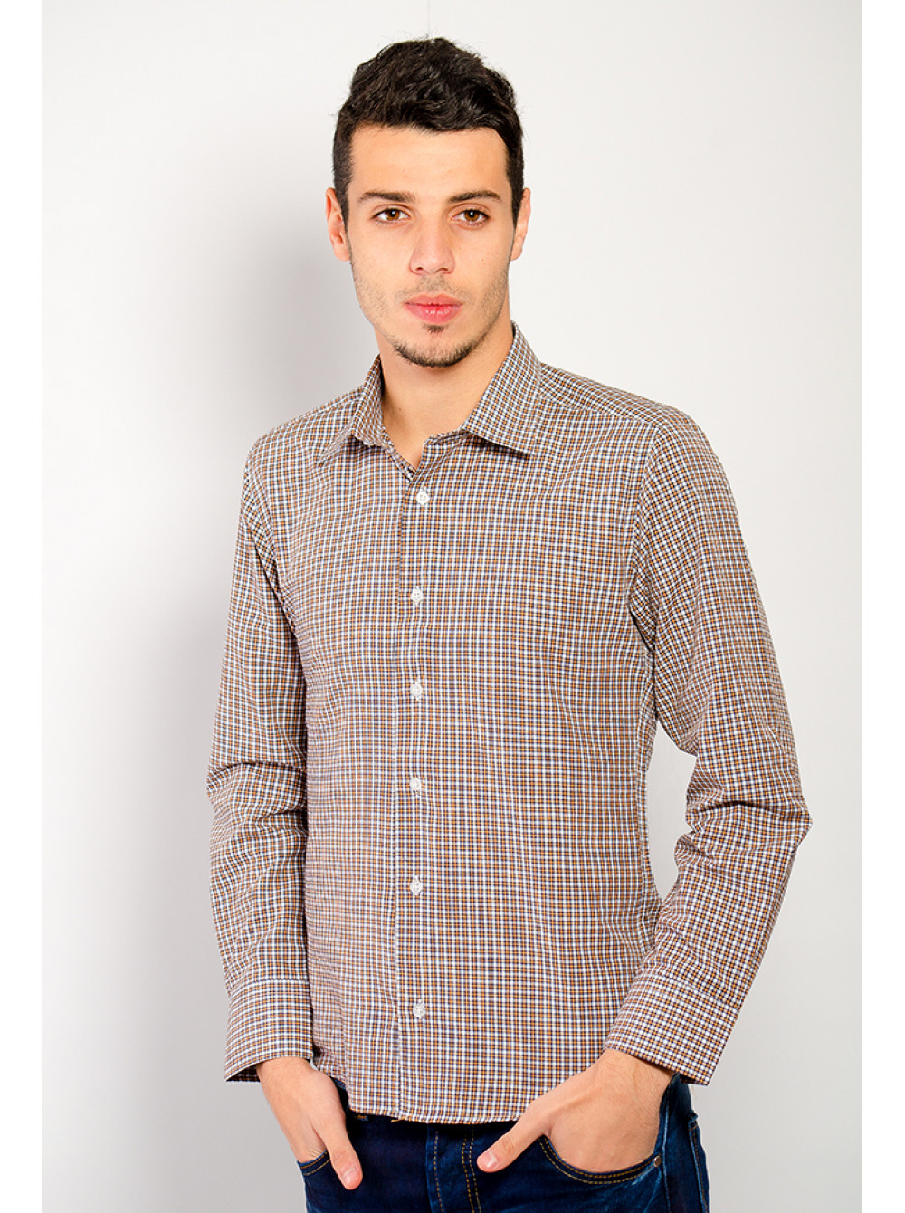 | Артикул | Рубашка №74F001_Бежево-черная клетка |