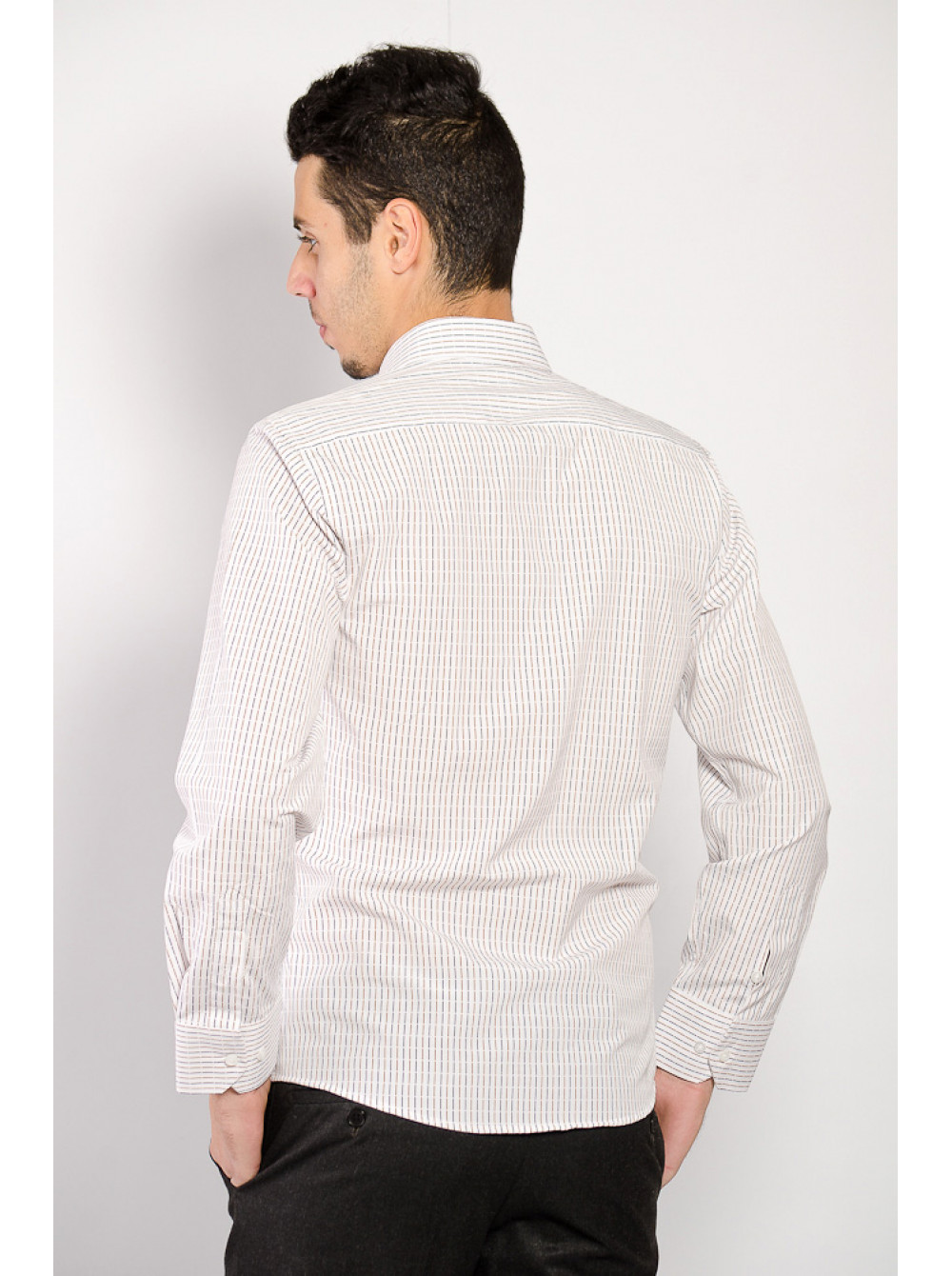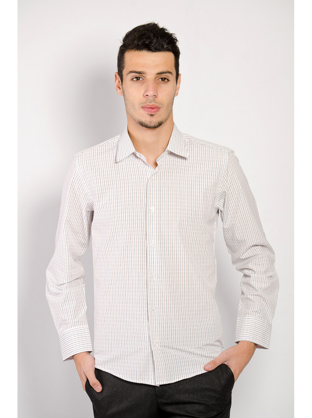 | Артикул | Рубашка №74F001_Белый с черно-коричневой полоской |