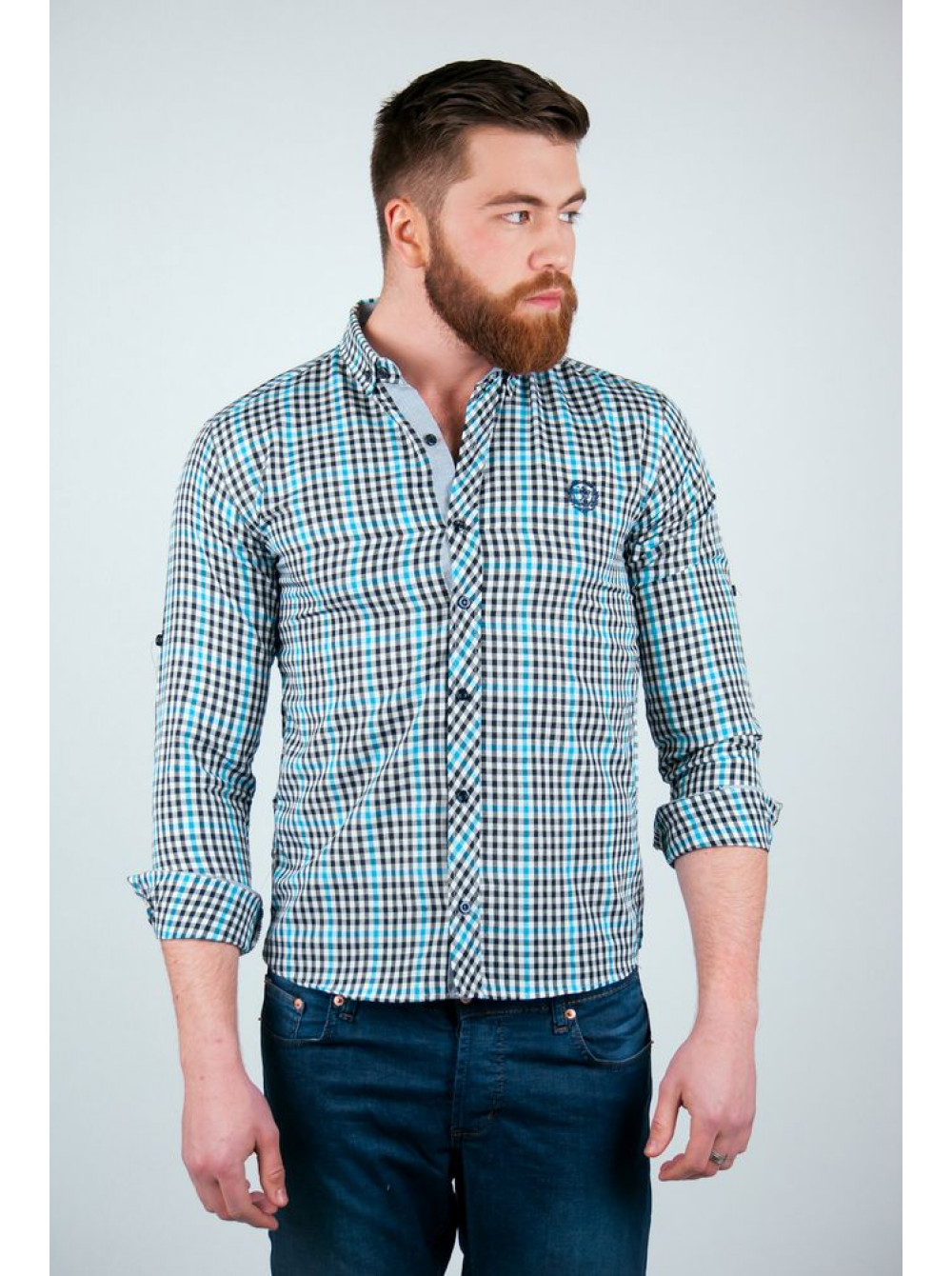 | Артикул | Рубашка №94F030_Черно-бирюзовый |