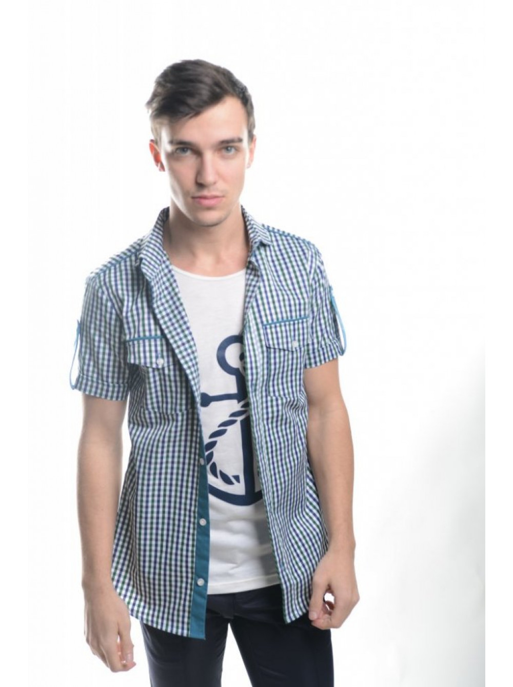 | Артикул | Рубашка-обманка 3103_Клетка сине-зеленая |