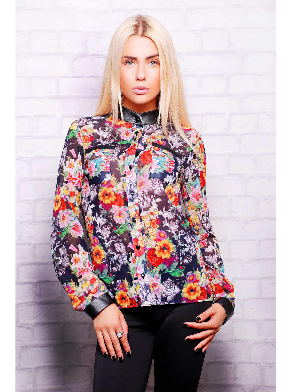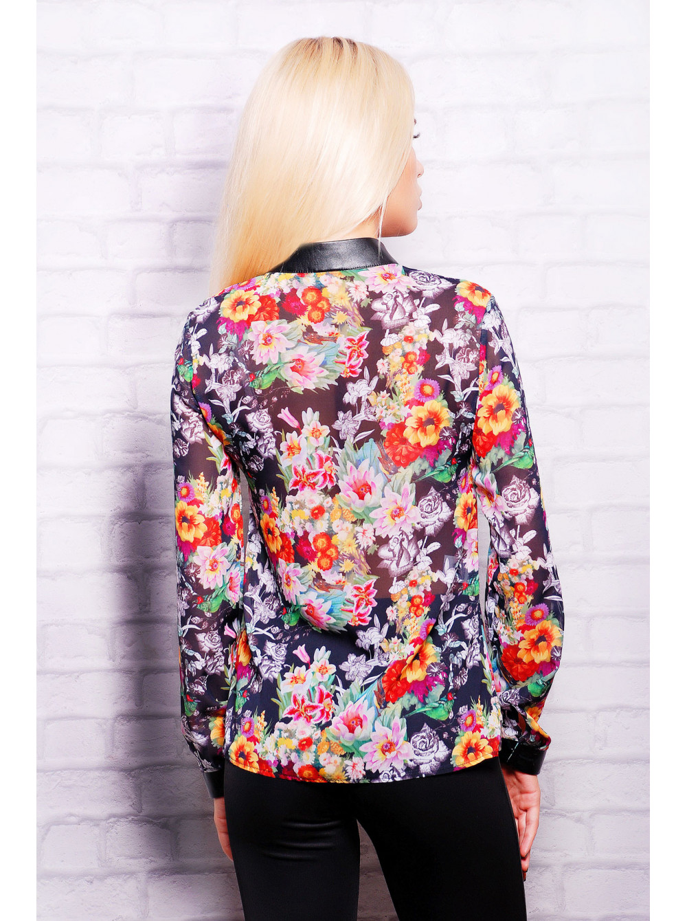 Цветы на черном блуза Лекса 1 д/р psФР-00001719_000010300